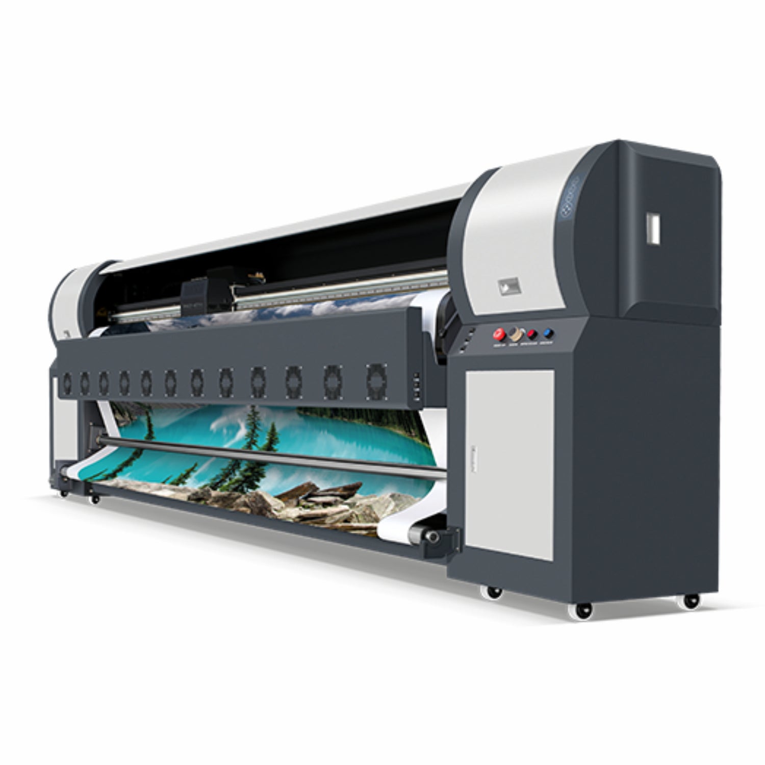 Impresora de gran formato, ideal para hacer impresiones que van a estar a la interperie, su impresión es 100% Solvente lo cual la brinda larga duración a las impresiones.
